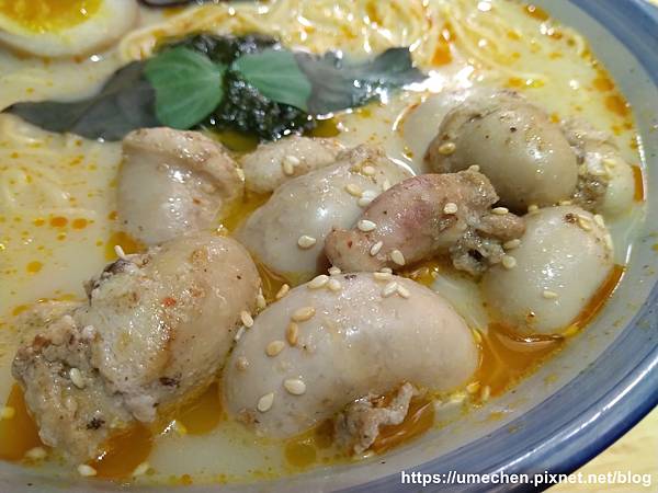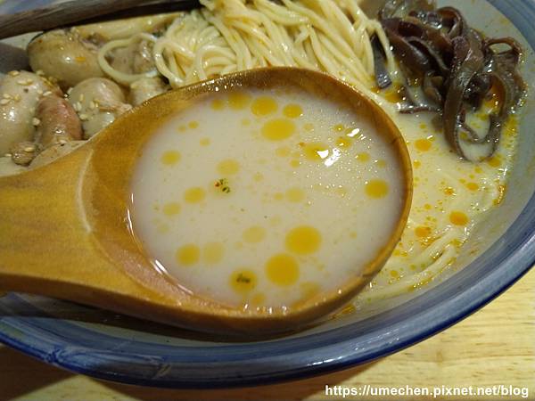 熟女承認,我就是為了一品〝雞佛泰豚拉麵〞而來的。太特別了,竟然以雞佛為拉麵的主打菜,我的這碗共有10顆雞佛,店家以重量4oz的雞佛為衡量,所以依據大小顆約為7~10顆左右,真是一碗超狂滋補的拉麵呀!