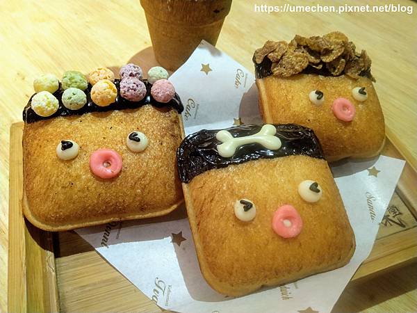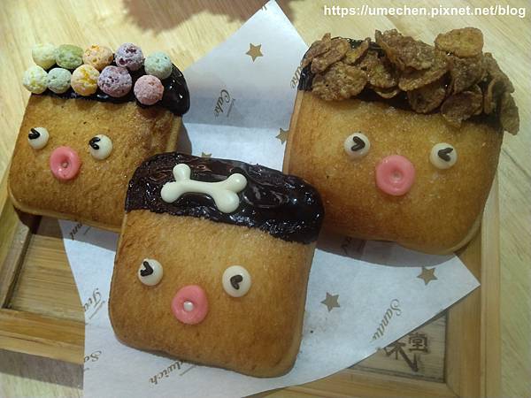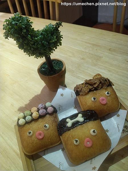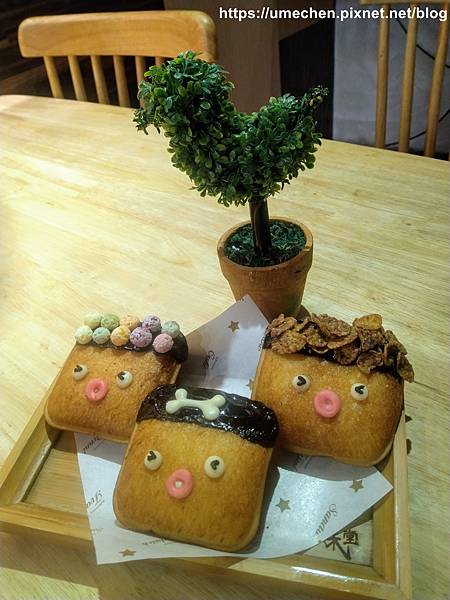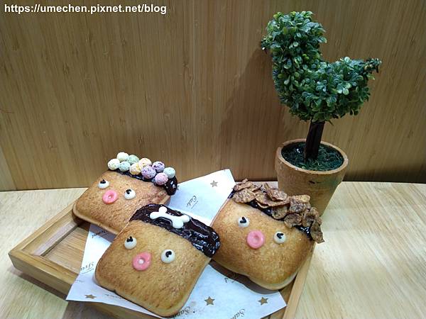 最可愛的是,方型的外表使用甜點材料做成三位不同髮型的小黑人,瞇著眼、噘著嘴,外型也取勝,可愛到讓人忍不住拍了好多張照片,才滿心歡喜地慢慢品嚐。