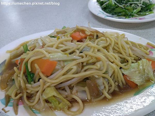 同行有兩位同仁吃素,我們請店家簡單地炒個2、3樣青菜、炒麵之類的,沒想到送上來4大盤,2個女生完全吃不完,幫大家加菜。一般這種熱炒店的素食,常常被歸類為角落生物,吃得委屈,無骨鵝肉店讓素食朋友吃得很開心哩!