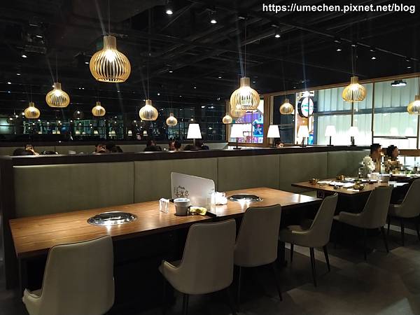 坐位滿多的,桌面積乍看之下寬敝,但餐點一上桌瞬間感覺有點不夠用,幾個人的韓式小菜盤、醬料碟就佔了不少面積,呵!有些區域桌與桌之間的距離頗近,併桌倒是很方便。