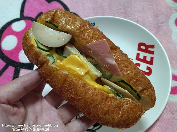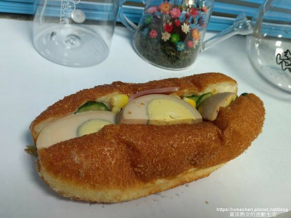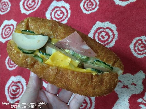 「不一樣三明治甜甜圈」,還有另一款〝起司火腿包〞,至今熟女仍無緣品嚐,本款限量,通常最早賣完,我如果想吃到它,可能要請假特別跑去買才有機會吧!