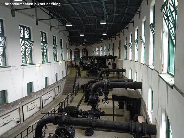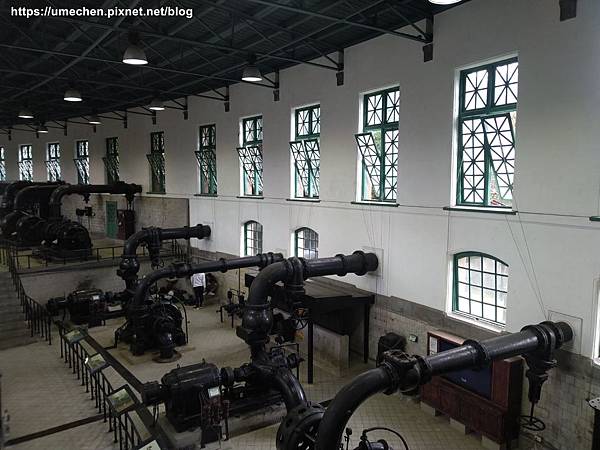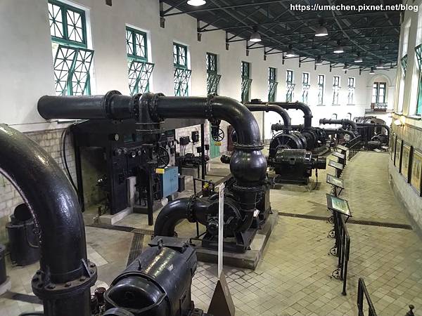 自來水博物館內部可供參觀,挑高兩層樓以上的超大空間,陳列往昔曾服役的唧筒室抽水機組,可一覽臺灣自來水現代化的推展過程、水資源開發的歷史&自來水的處理流程,還有壯觀的古董級的抽水、檢修、消防設備等。