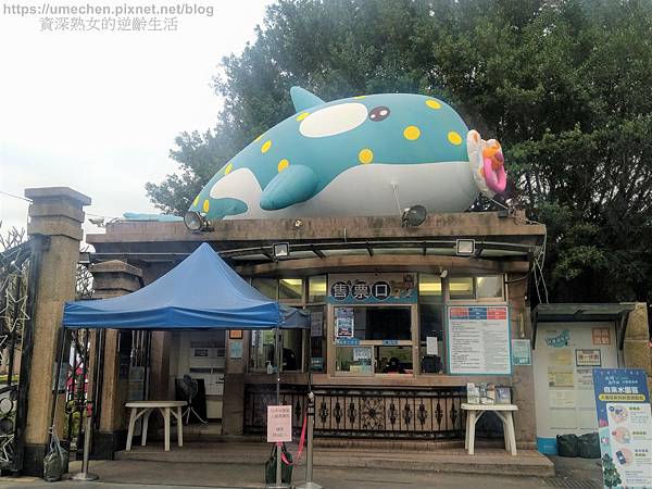 照片中的充氣鯨魚,為110年年初的活動佈置