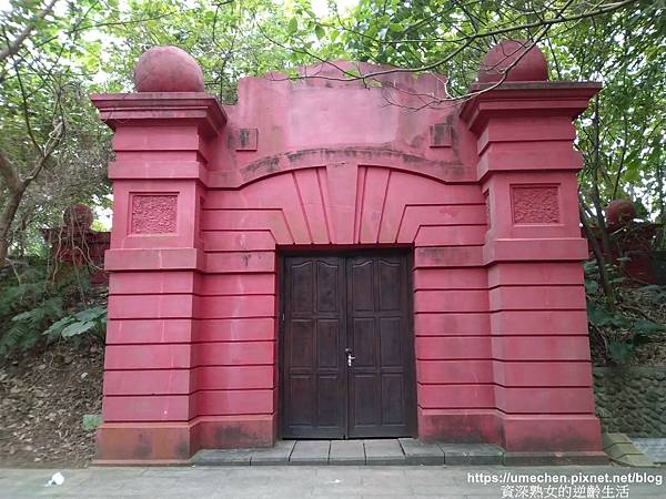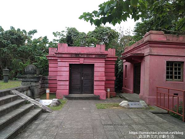 ▼ 觀音山蓄水池,有數棟酒紅色混凝土建築,很適合拍照