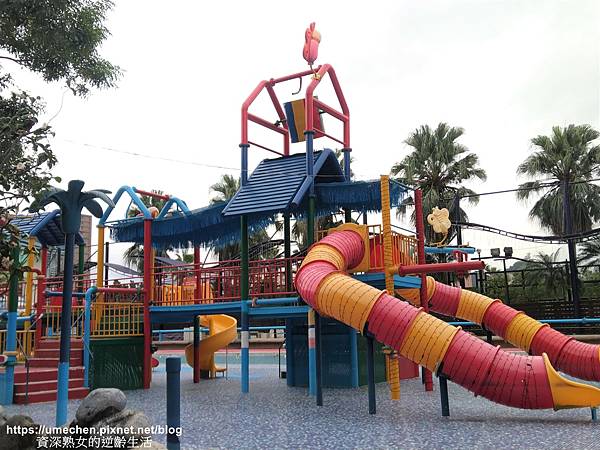 在淺層水池裡搭蓋的水上遊樂園,外型仿造自來水輸配之水管設備,小朋友在管狀設施裡爬上爬下、滑溜玩耍,室內提供簡餐飲料,讓你進場後可以玩久久。