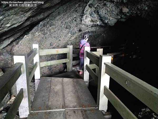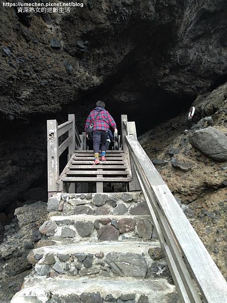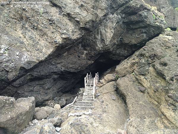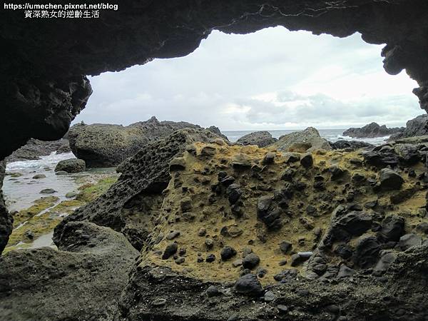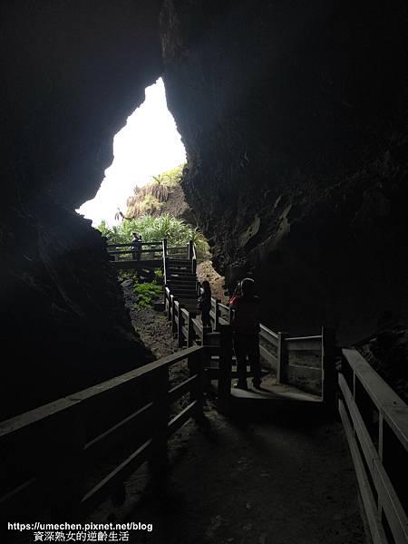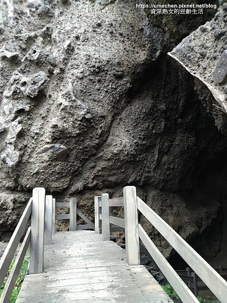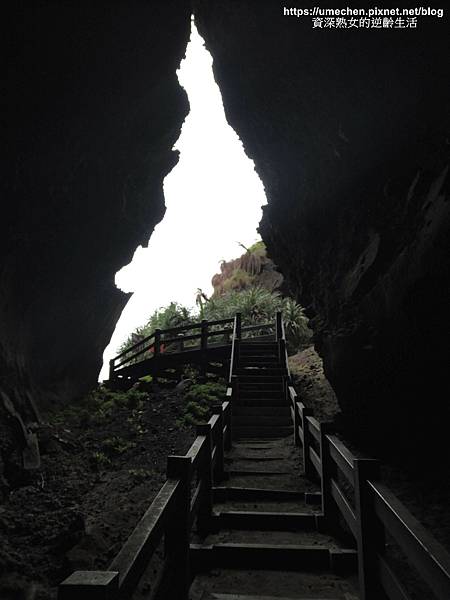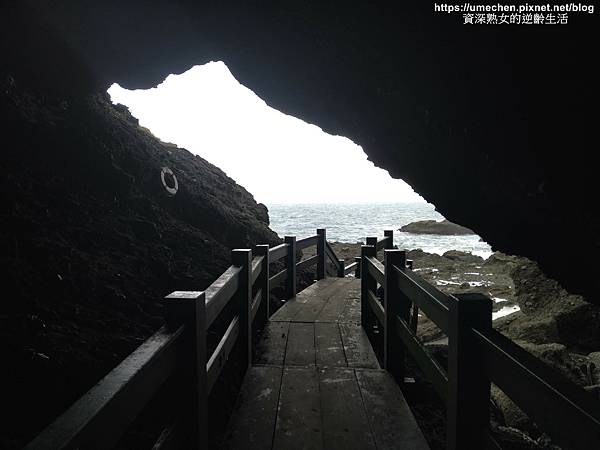 熟女我走在海蝕門裡,雖然行如瞎子摸巷,惟步道欄杆讓人安心前行,而且完全黑暗只有一下下,真的沒有很恐怖啦!來到呂洞賓岩,強烈建議來合歡洞走一回,體驗大自然的奧妙。