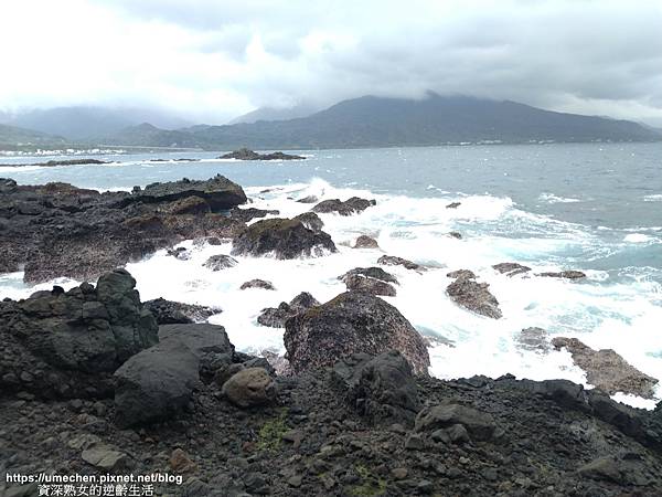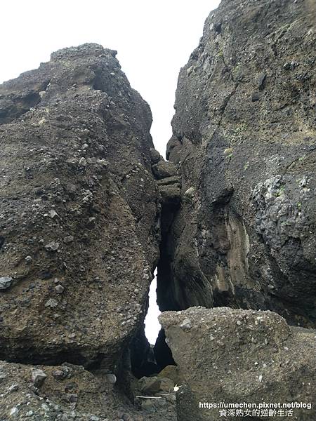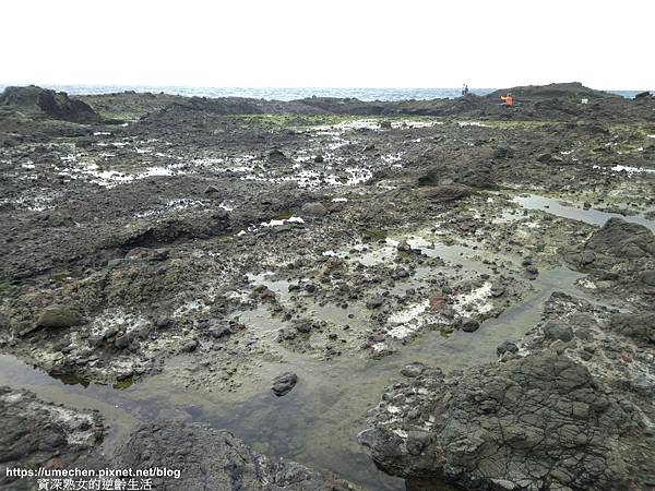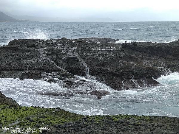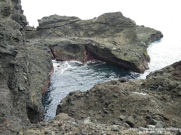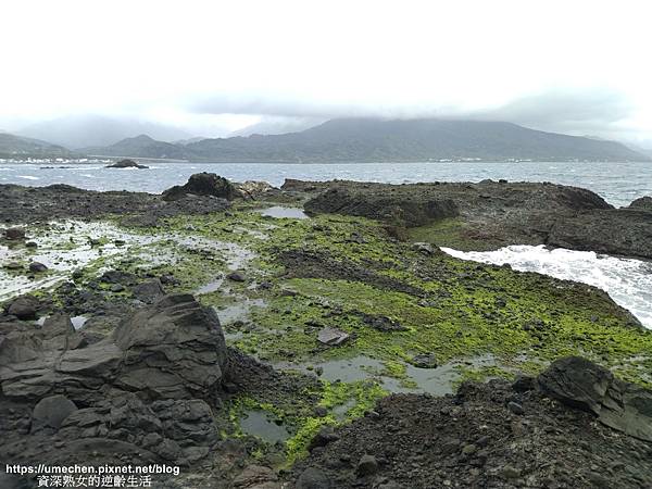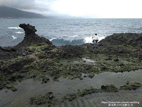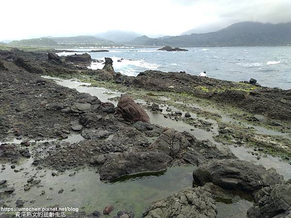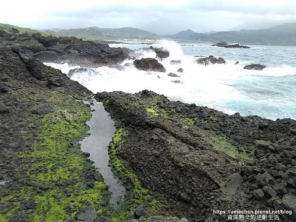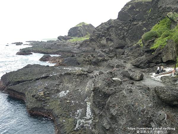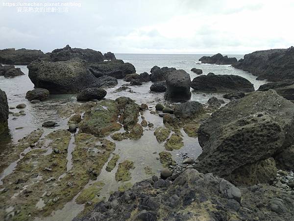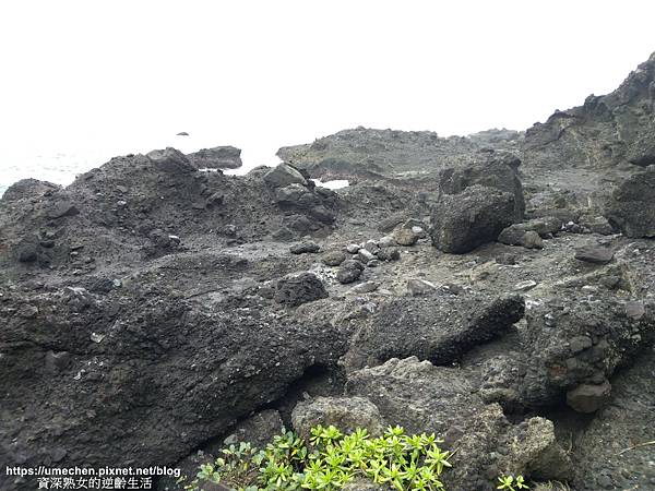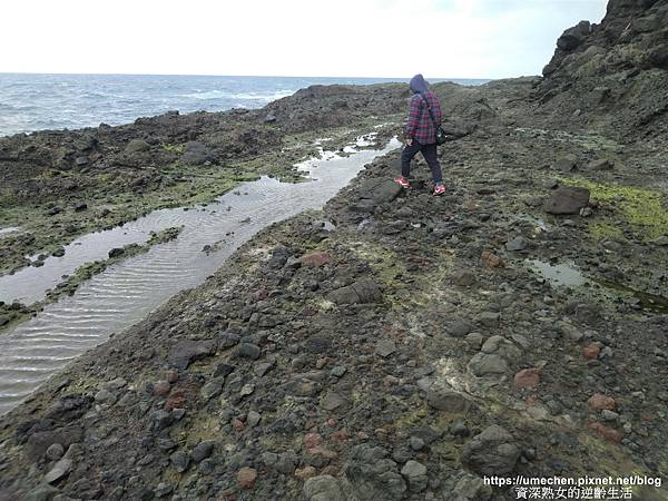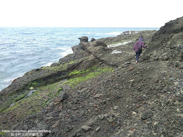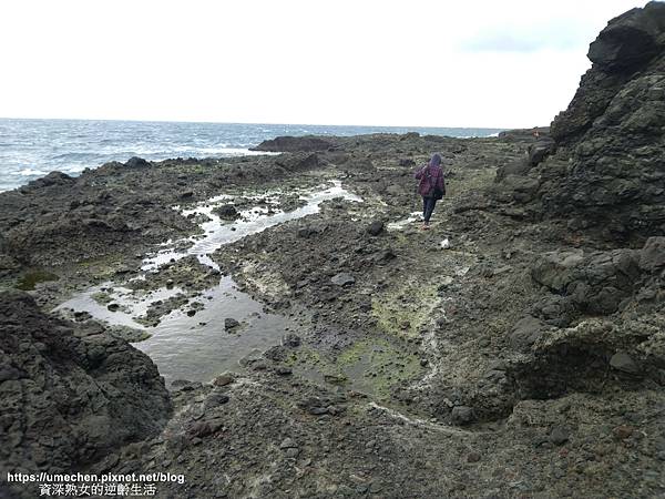火山集塊岩被海水侵刷出分明的凹凸節理,岩石的凹凸之間,多處積了海水,也長了不少藻類,因此行走其間須小心濕滑。