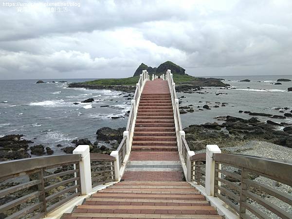 走下跨海拱橋,即連接一條好走的石板步道,此為許願島步道。