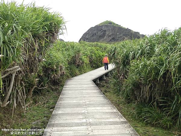 步道由一大片的林投樹林中穿過,林投具有防風、固沙的功用,是保護海岸的重要功臣。不過林投樹的葉子多刺,若有小朋友隨行,務必提醒勿觸摸或跌落木棧道旁。