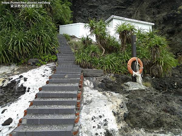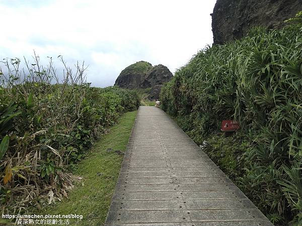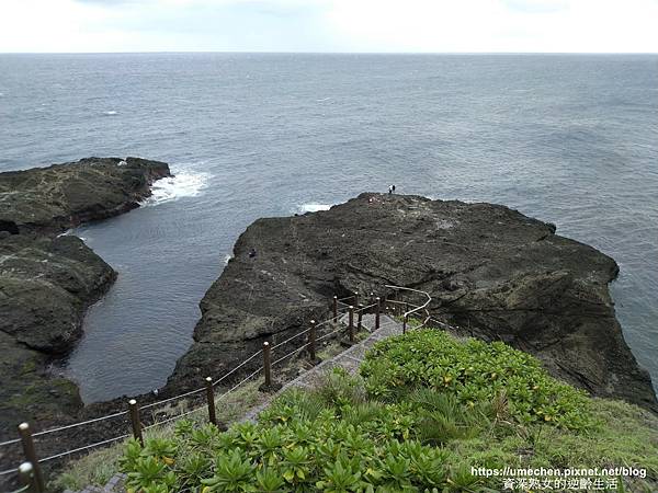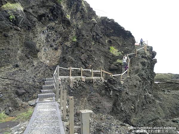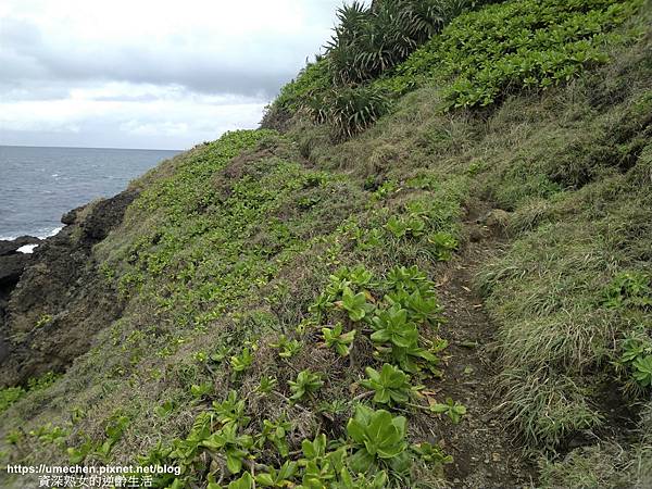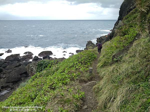 這段是海濱懸崖旁的狹小步道,沒有欄杆保護,不到2分鐘即可通過此小徑,然後就是平平的海蝕平台岩岸。