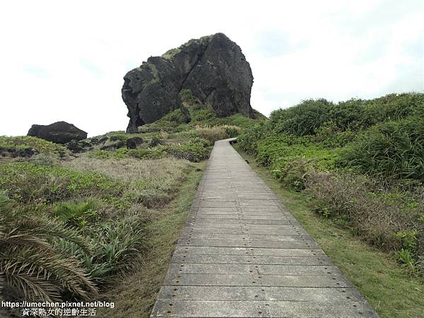 許願亭旁邊有一塊超大岩石,這是傳說中的李鐵枴登臨離岸島的地點〝李鐵拐岩〞,步道會沿著李鐵拐岩繞一圈,此部份的步道為木棧道,沿路可欣賞到壯濶的太平洋美景。