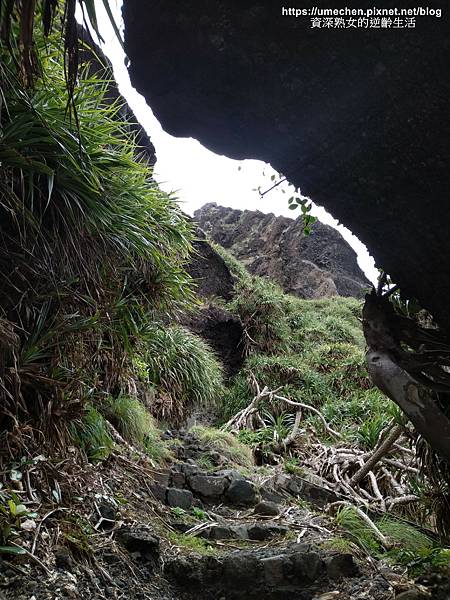 二是面對呂洞賓岩的右邊 (南端、靠太平洋),有明顯路徑,但並未設步道,跟著走就對,我看過走這條路徑的人稍多一些。