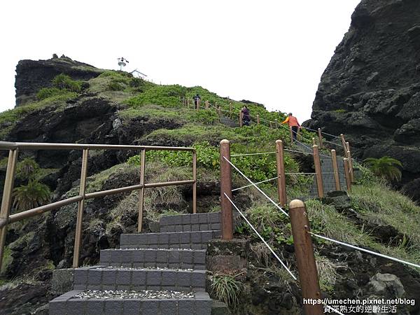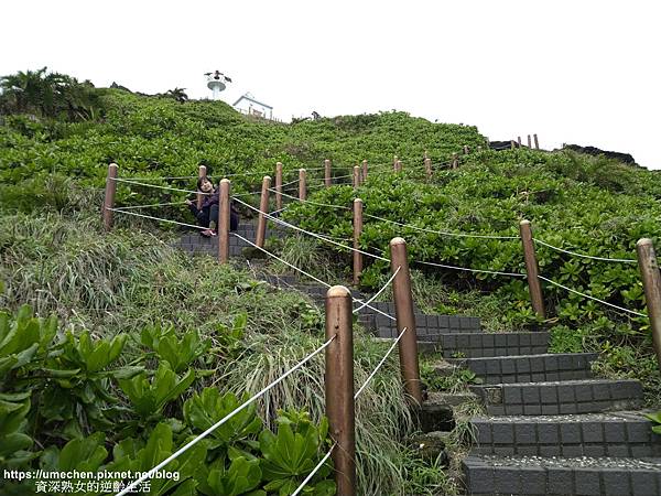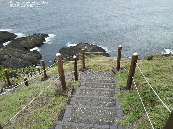 陡高的呂洞賓岩,使得階梯狹窄而陡峭;而海邊的風時常吹得讓人髮亂。所以採取中途稍微停留腳步,欣賞絕美風景,成為多數人的策略。