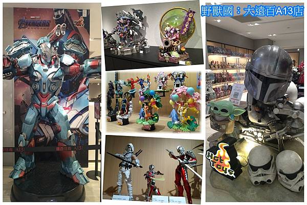 新光三越A9的野獸國店面,部份商品二家都有販售,但也有各家主打的推薦款。例如新光三越A9,可看到Egg Attack系列、Egg Attack Action系列可動人偶、mini Egg Attack擺飾、Master Craft極匠雕像系列與D.A.H究極英雄系列可動人偶……等。喜歡蠟筆小新的朋友,請直接衝去新光三越A9喲!