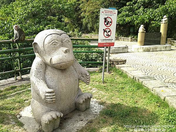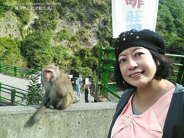 保持耐心,很容易拍到彌猴身影唷!甚至拍合照難度也不高,但拍照勿觸摸,亦請保持一些距離。熟女和彌猴自拍、錄影,牠也乖乖地東張西望沒理我,呵!