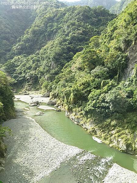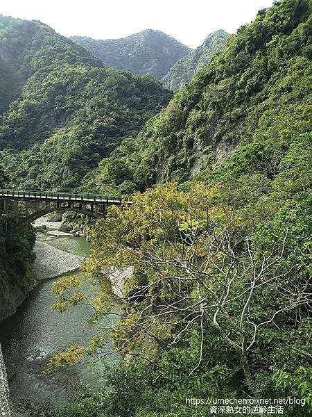 俯瞰峽谷下的溪流,與四周環繞的青山呈現不同的碧綠,少了城市的喧囂,偶而遊人的三言二語,很是愜意的時光。