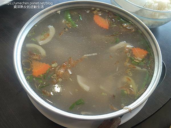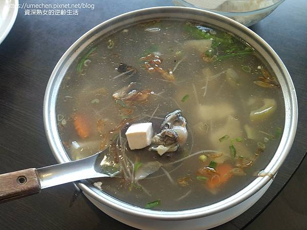 蛤蜊多多,以薑絲去腥、提味,加入豆腐塊、酸菜、紅蘿蔔等豐富配料,去油解膩效果佳。
