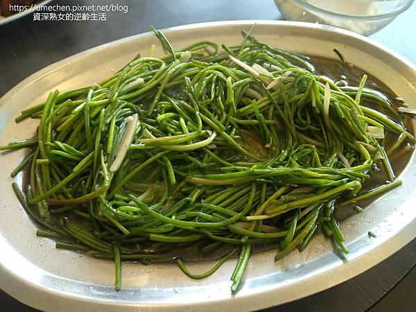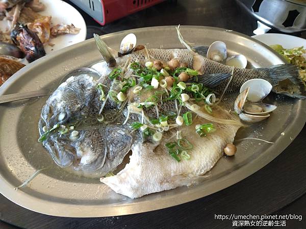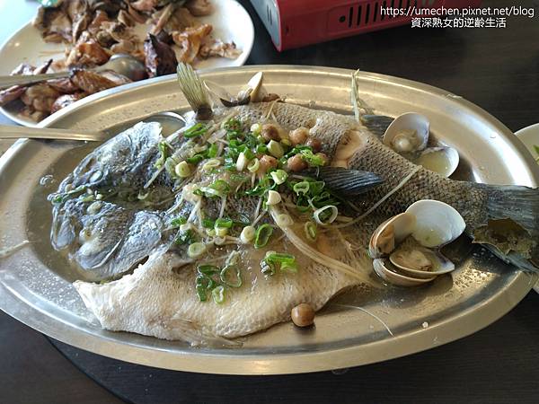 清蒸方式最能彰顯魚肉的新鮮原味,我們點的清蒸山泉活鱸魚,魚刺不多,肉質相當鮮嫰,輕鬆夾取魚肉給小朋友吃。