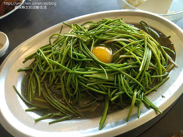 生蛋黃攪拌,增加水蓮的滑潤度,更易入口,減少澀味,就像過貓也要加一顆生蛋黃的作用一樣,還能多一股蛋香。