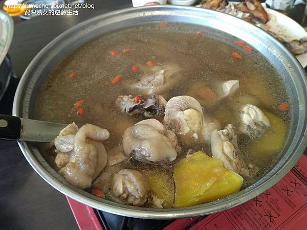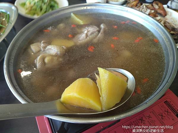 富群休閒農園的牛奶脯雞鍋,還添入地瓜切塊,湯頭更顯香甜清爽,熟女本人也推薦這道牛奶脯雞鍋。