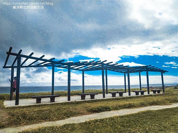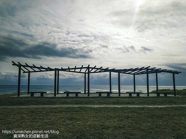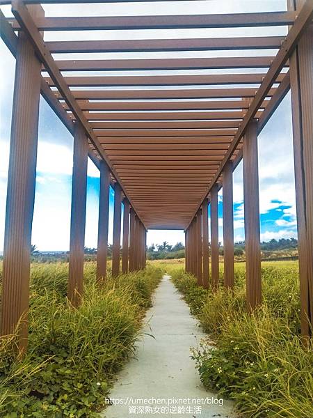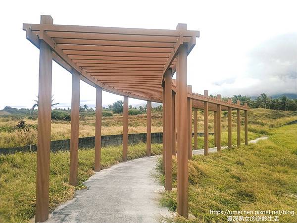 環形步道設有2座花架,熟女2次造訪均只有看到花架,沒有植物攀緣,惟拍起照來頗有天蒼蒼野茫茫的意境。