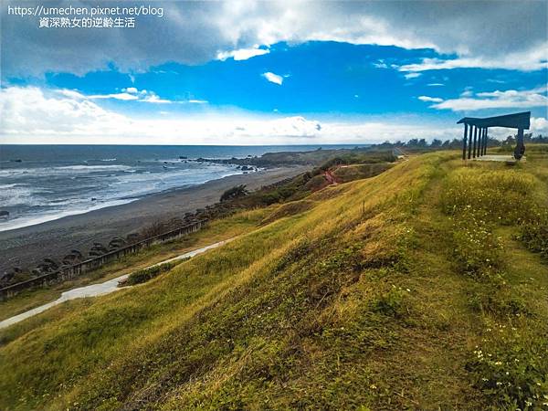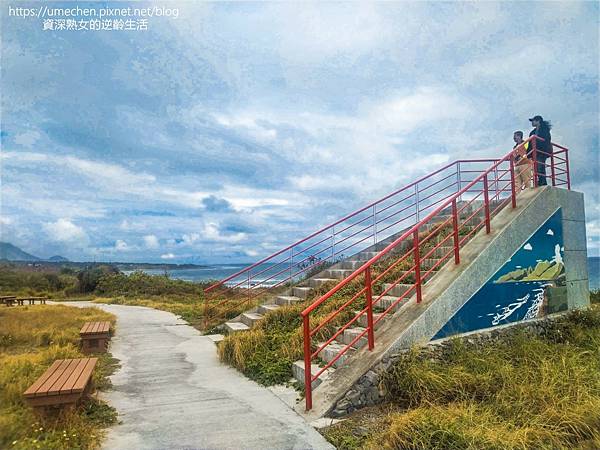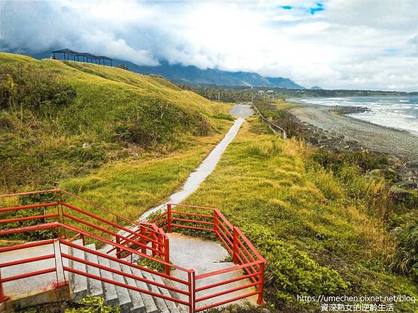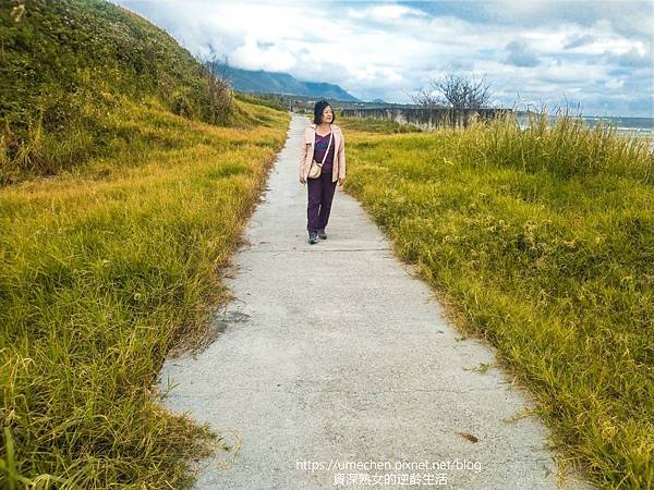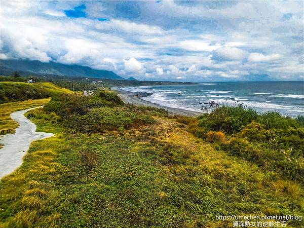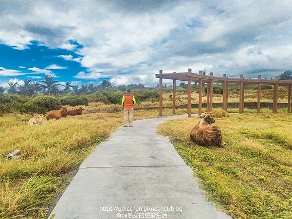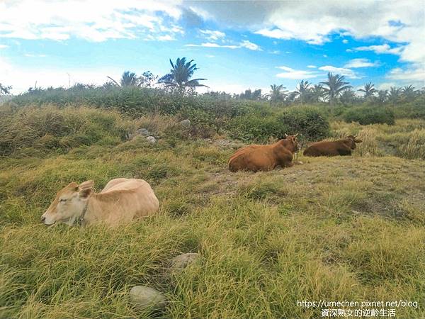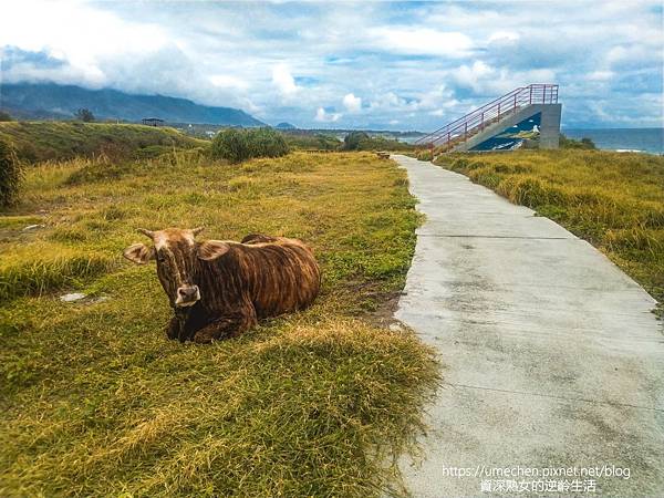 整個都蘭觀海平台景區,可步行繞行一圈。熟女有一次造訪時,還看到數頭牛隻悠閒地或站或坐在草地上,似乎有人飼養,對我們來回經過完全沒反應,很像來到陽明山擎天崗草原。