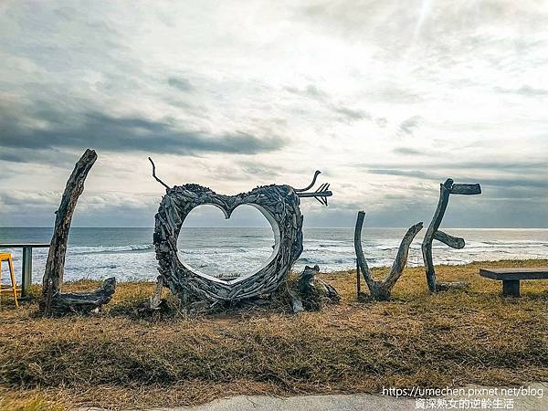 非常夢幻的LOVE愛心漂流木裝置藝術,上午逆光,下午才會順光,能拍出以海洋為背景的網美照唷!
