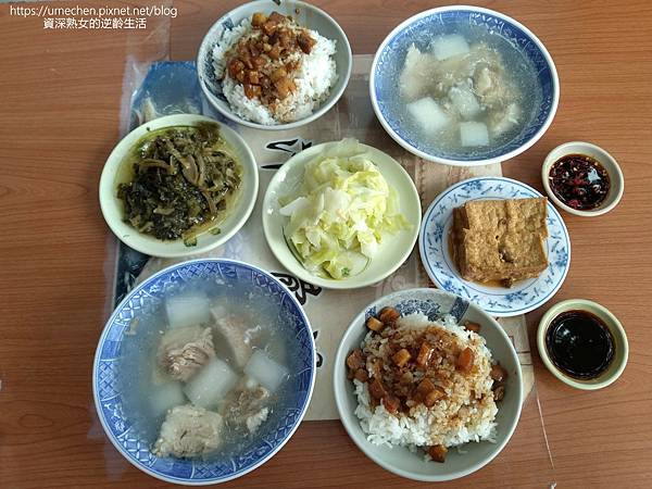 短短的廟前美食攤位,初次來的饕客、眼尖的朋友或許會發現到,有2家賣的東西幾乎一模模、一樣樣,都是主打 蘿蔔排骨湯、梅干菜、滷高麗菜和滷肉飯,而且2家都有長長的排隊人潮。探聽之下,原來2家有親戚關係。