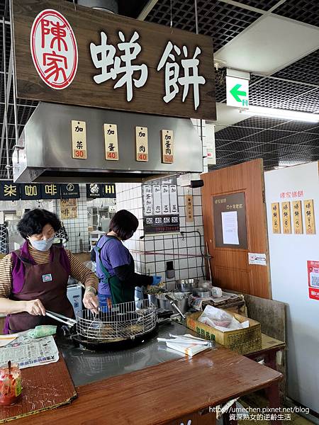 位在介壽獅子市場2樓的陳家(虫弟)餅,為在地40年的排隊人氣早餐,我們觀光客也跟著一起排隊。因為現點現做,加上很多人都點好幾個,假日排隊要有耐心。
