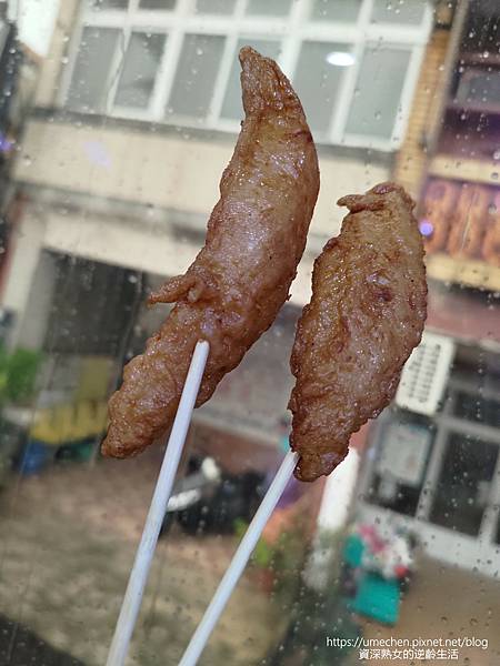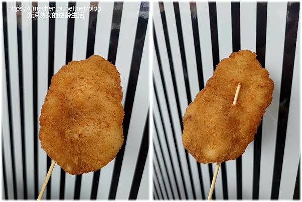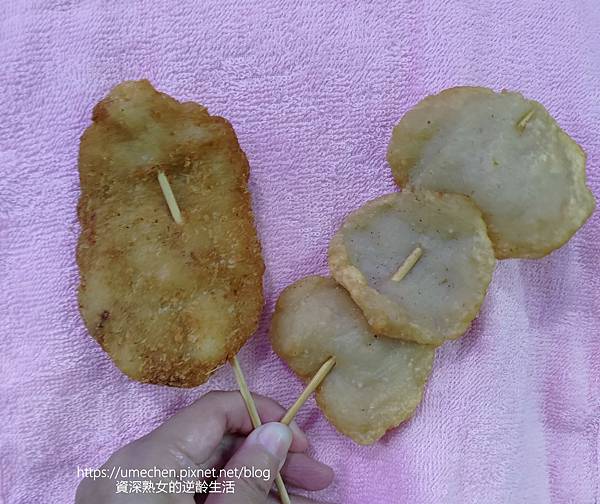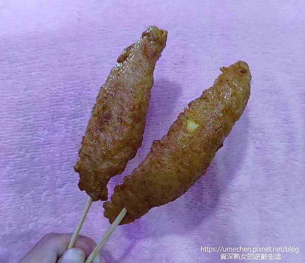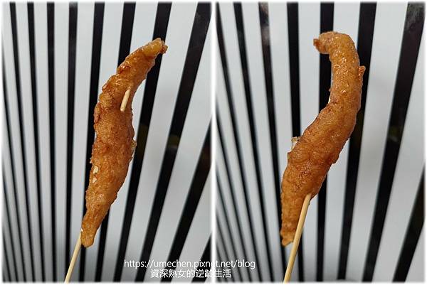 高度存在感的花枝塊,幾乎每一口都吃得到,和旗魚黑輪一樣的香甜酥,也是很後悔只買2片。