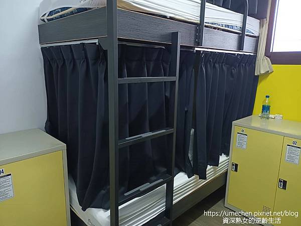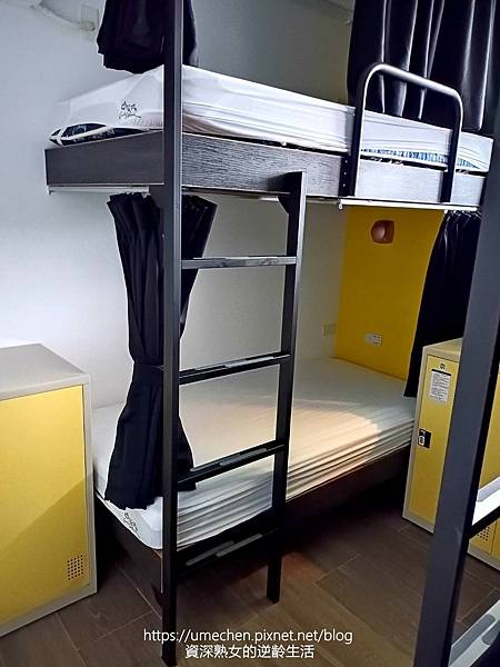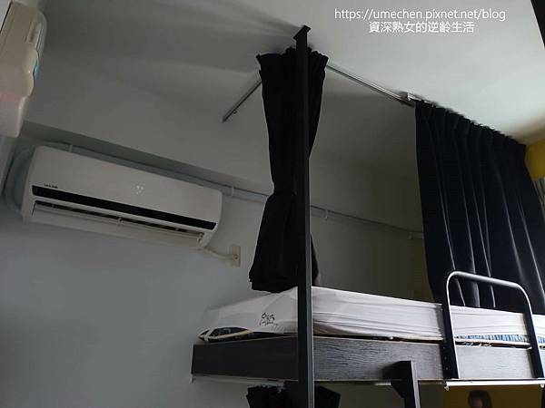 每個床位都有黑色不透光床簾,但仍有保持通風。實際拉起床簾,感覺很順,兩片床簾能完全交疊、不漏縫隙,能保持隱私,這點值得加分。