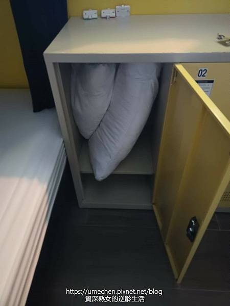 入住時,打開櫃子,裡面放了枕頭、棉被,這樣可以防塵。拿出枕頭、棉被後,放個人行李空間非常足夠。