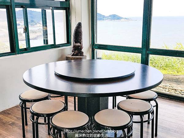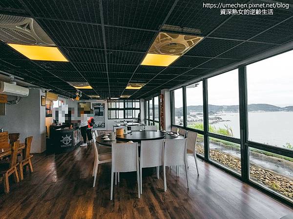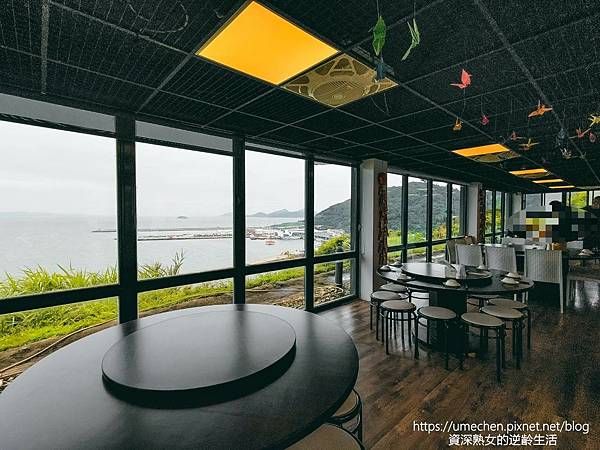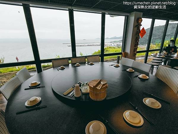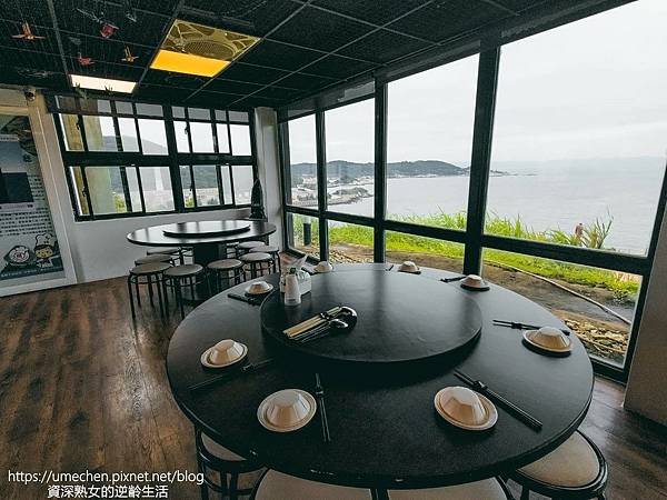 因為一整面的玻璃窗,加上地勢與位置,在用餐的同時,即可欣賞到南竿北岸無敵海景。我們造訪時為連日陰天,位在北邊的北竿島也能看到,光是這片景色,已很值得。