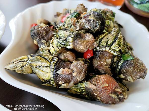 涼拌佛手,看起來殼硬硬、造型特別的佛手,其實咬一下即可剥下殼來,滋味令我印象深刻,我吃了6、7顆。