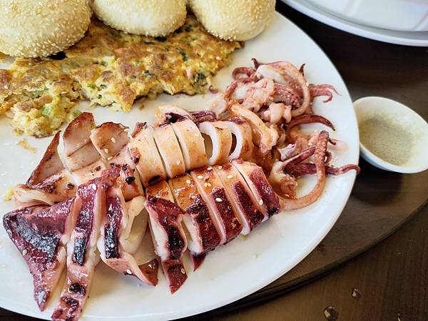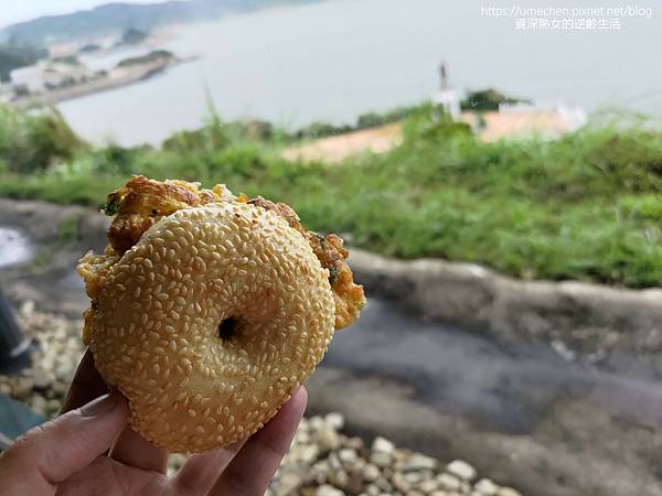 夾一點煎蛋在繼光餅中間,瞬間成了道地的馬祖漢堡,伴隨著芝麻香、蛋香、餅香&海味,好滿足!
