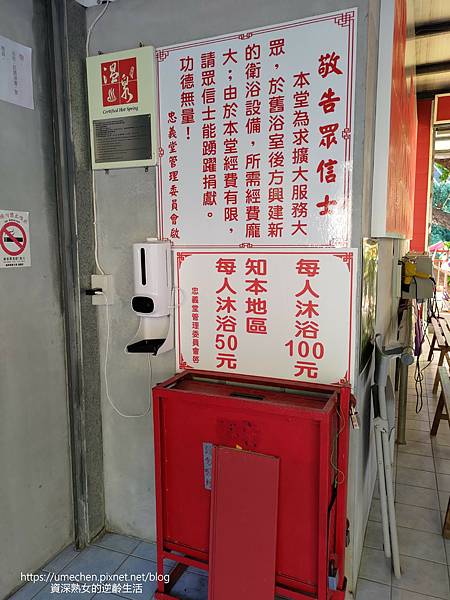 因為建新廟宇須龐大的工程費,原本的隨喜樂捐,調整為固定收費,目前每人100元。我們沾了定居知本二妹的光,知本在地居民50元就可泡湯。
