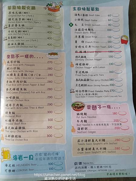 如果你有吃過柴山其他咖啡廳的餐食,再看看海角餐廳,會發現到海角咖啡價位真的平實,所以沒有美美裝潢請包涵啦!而且不限時、低消100元而已,已經很佛心啦!