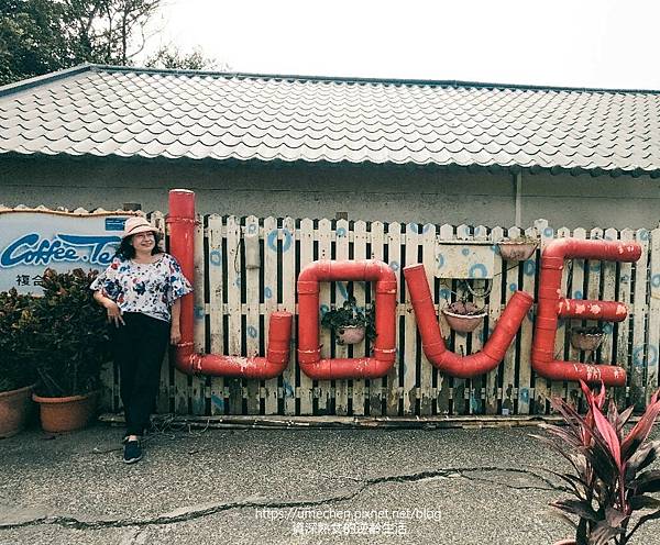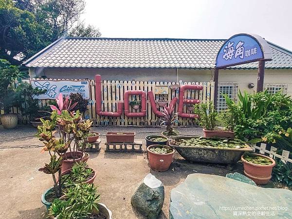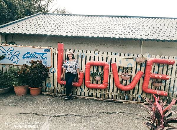 白色圍牆上,以大紅色的水管拼出LOVE字樣,這可是海角咖啡最人氣的拍照場景。