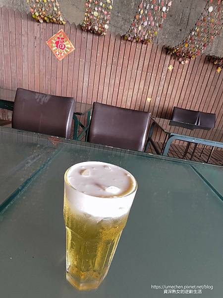 木板架高的地面上,擺著一張張木桌,搭配很常見的扶手椅子,倒也不是萬用塑膠椅,乾乾淨淨的餐環境,只要心裡想著自己是來吃喝、看海看夕陽,即使沒有美美佈置,環境算是舒服、乾淨的。