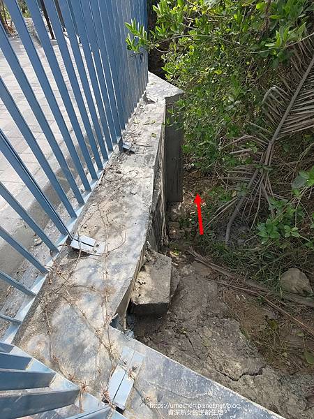 停車場欄杆旁,有一條很小的小徑,是通住柴山秘境海蝕洞的小路。