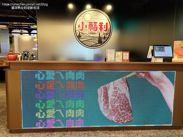 等進場時,一直盯著入口櫃檯的LED螢幕,櫃檯本身就是營幕,看著小福利的口號字句,一邊跟著唸、一邊笑了出來:戀愛慢慢來、吃鍋要趁熱;心愛ㄟ肉肉……等。