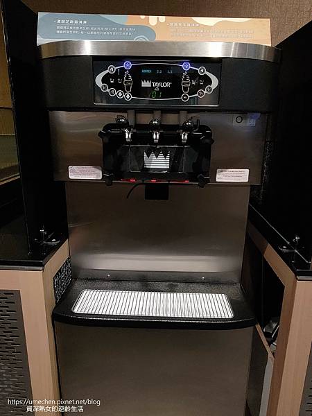 有一台自助霜淇淋機,造訪時有 黑芝麻、脆脆花生二款霜淇淋。熟女拍照時很開心,吃到後來就忘了去裝一支來吃,飲恨!