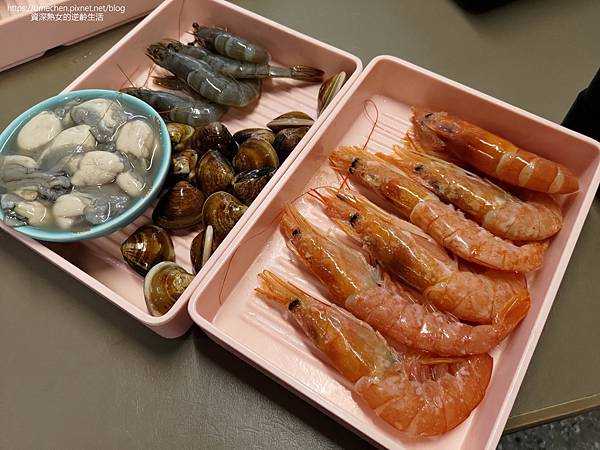 海鮮類是評比食材新鮮與否的最簡便方法,前後直接來幾盤 透抽、藍鑽蝦、東石蚵仔、蛤蜊、天使紅蝦、金目鱸魚片……等,適拿放進汕頭湯底涮煮。