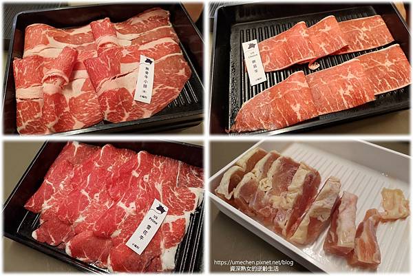 牛雪花、牛霜降、無骨牛小排、嫰肩牛、肋眼蓋、五花牛、松阪豬、豬五花、去骨嫰雞腿……等,品項豐富,全部都有點一輪。