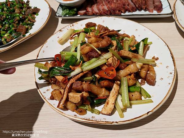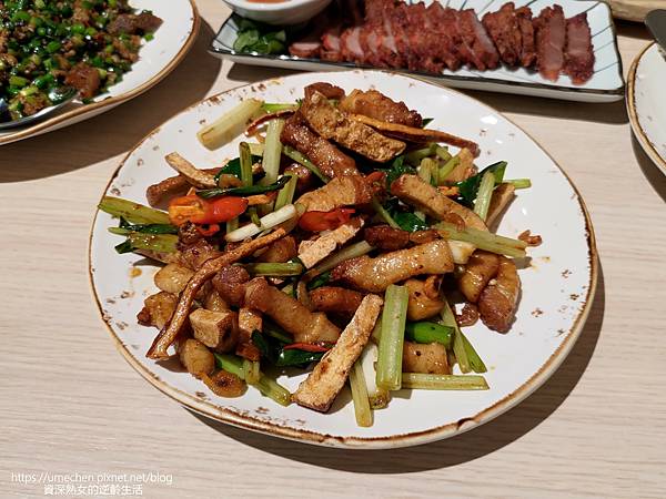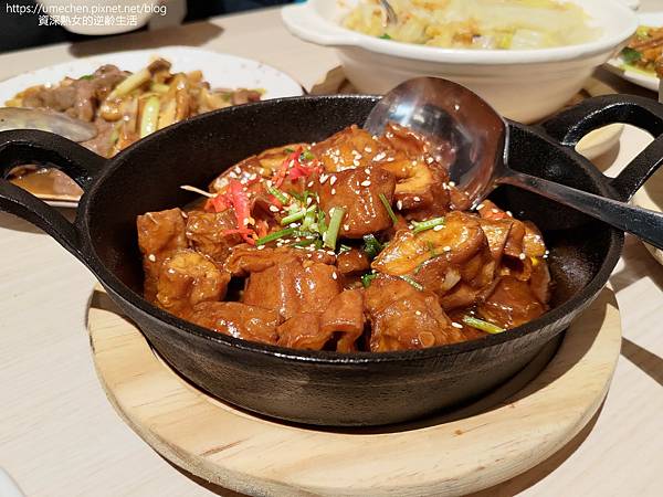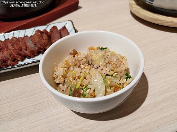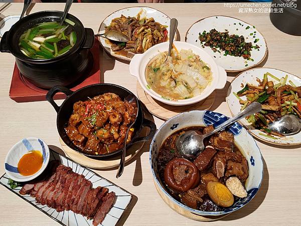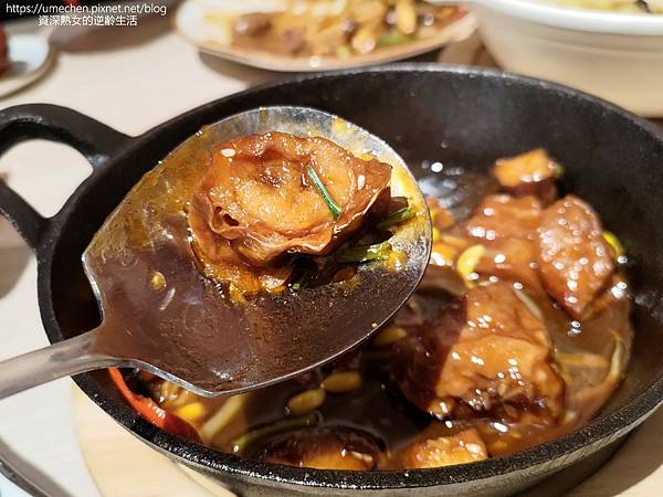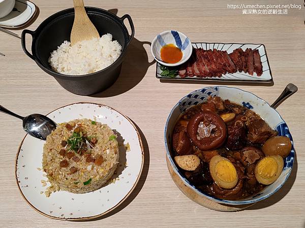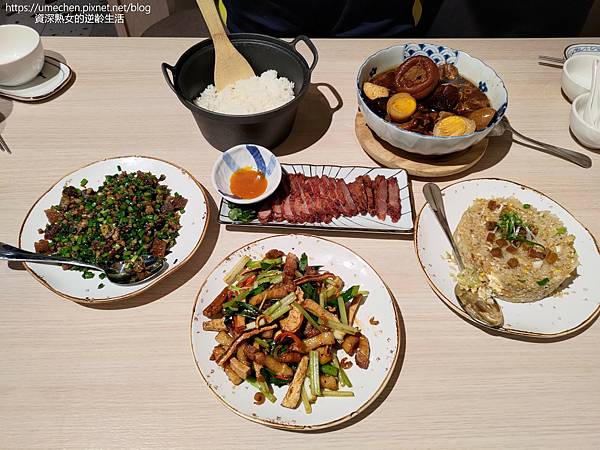 我們還點了 蔭瓜炒牛肉、香酥紅糟肉、五花魷魚小炒、蛋酥白菜滷、黃金烏魚子炒飯,4個人這麼多道,最後只打包紅燒拼盤(連湯汁)、魷魚螺肉湯,其他全部完食,只能說:道道下飯、意猶未盡!