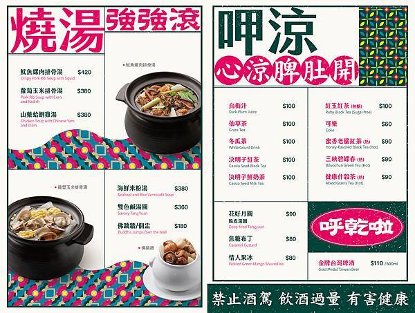 走道上的霓虹燈飾,彰顯出台菜的澎湃&人情味,轉個身,好似回到兒時熱鬧的辦桌會場,準備大快朵頤。