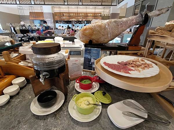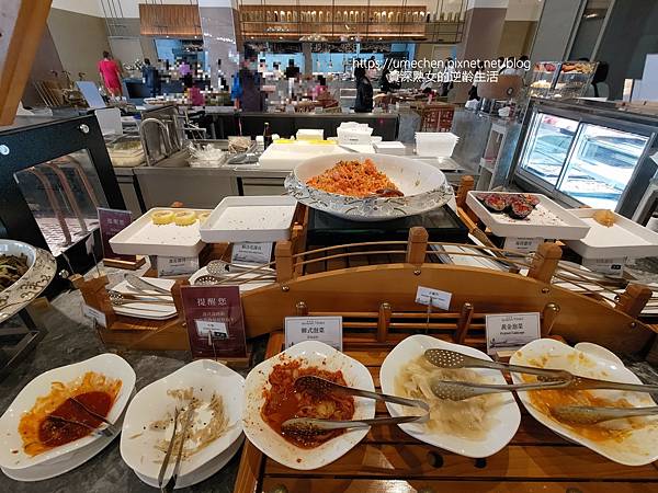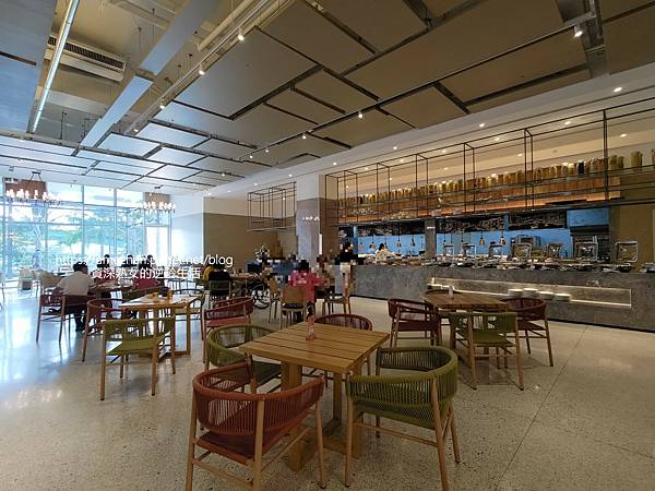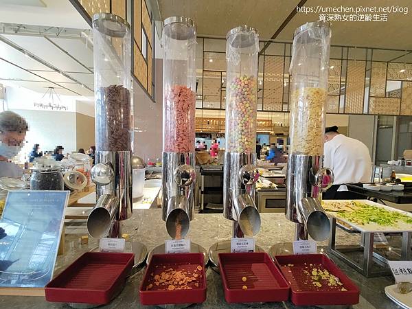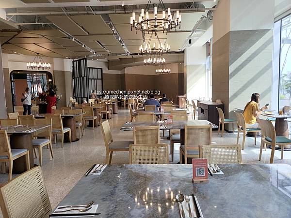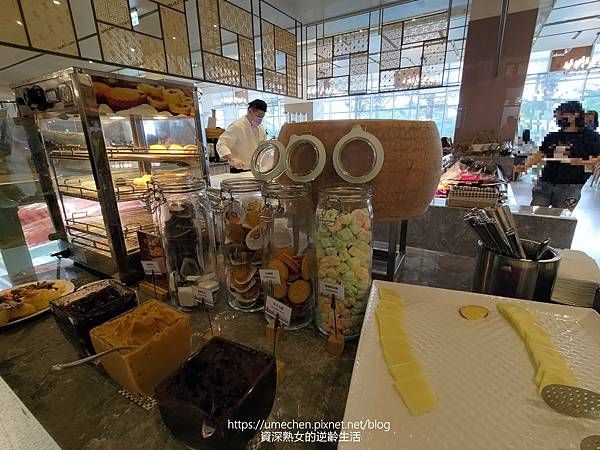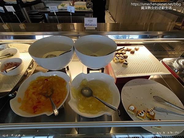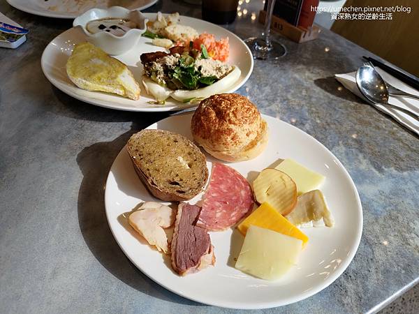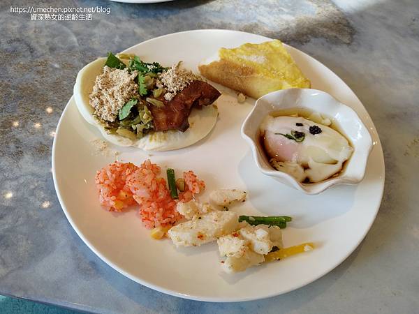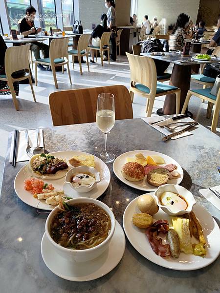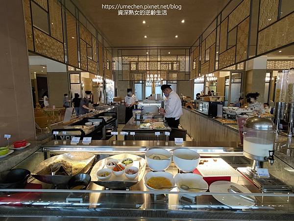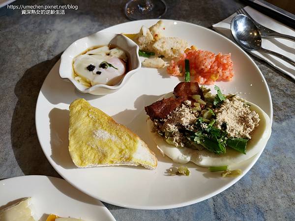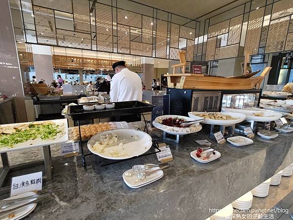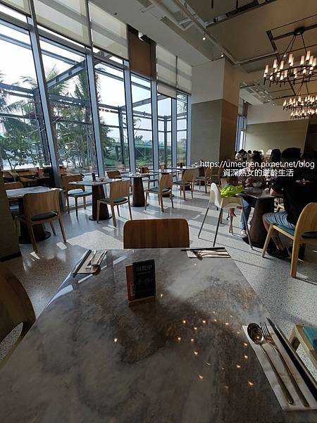 當然,最吸引我的,首推靠湖邊的落地窗旁座位,不過被服務人員帶位到中間但靠取餐區的座位,幸好坐位也能感受到晨光的舒服。