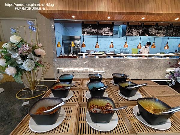 日式的壽司區,多款花壽司、蛋皮壽司、海苔壽司……等,可搭配泡菜、牛蒡絲、子薑片……一起享用,但壽司沒怎麼令人印象深刻。