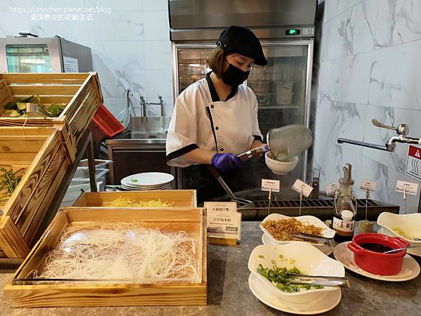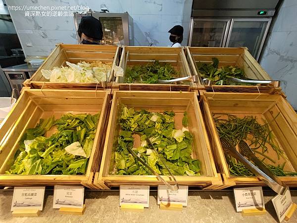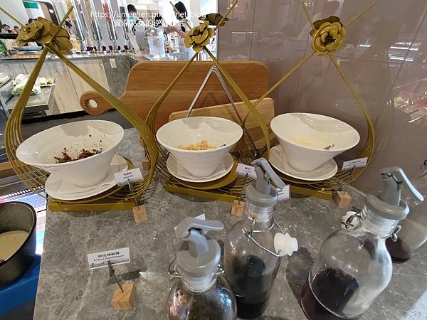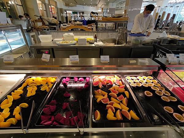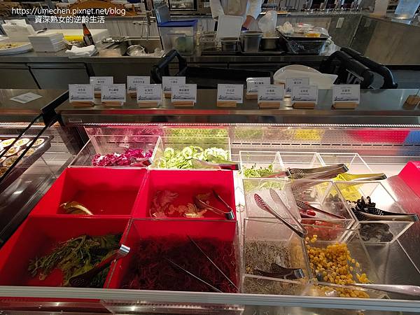 前菜冷盤沙拉區,有調配好的堅果洋芋沙拉、山藥沙拉、紐澳良雞胸肉……等,也能加優格、水果,自由發揮你的沙拉輕食早點。