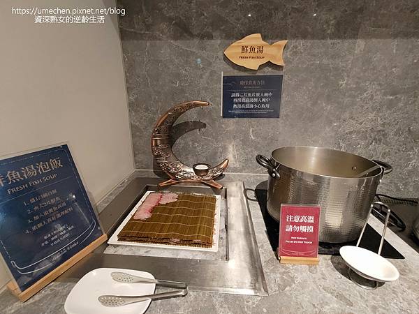 鮮魚湯,作法同牛肉湯,魚片較牛肉稍厚些,切記不可貪心夾太多塊,以2塊為佳,以免魚肉太生。